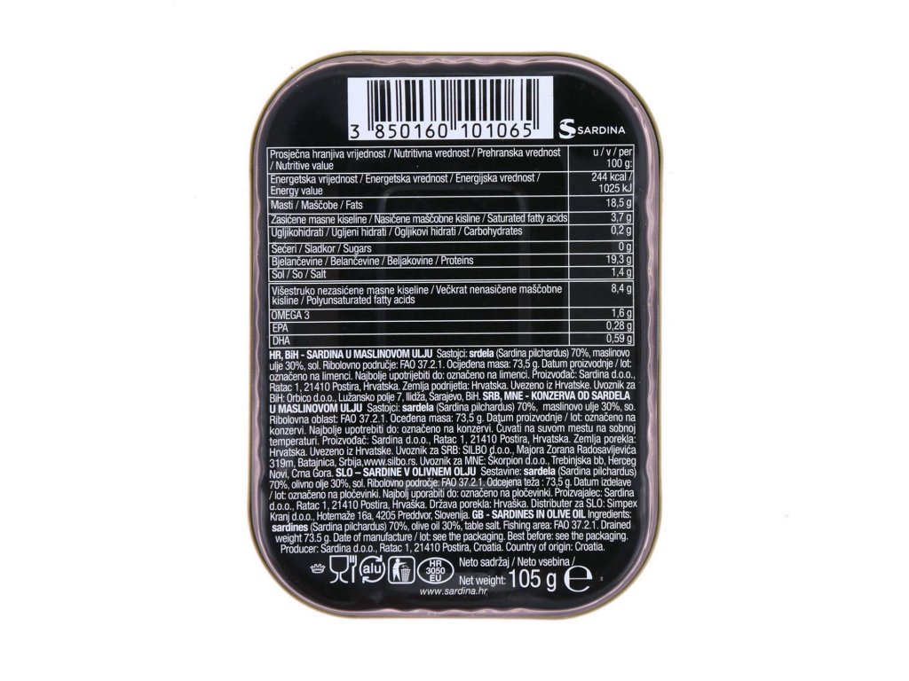 Sardinky v olivovém oleji z Jadranu a ostrova Brač kde společnost Sardina vyrábí rybí produkty již od roku 1907 jsou známe po celém světě svoji nejen svou chutí ale také kvalitním zpracováním produktů což také dokazují certifikáty kvality. ISOO 9001: 2000, HACCP a IFS.