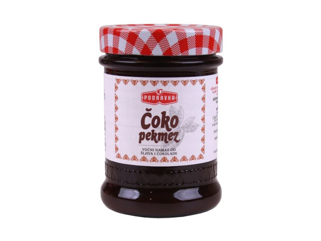 Složení: švestkové pyré (160 g na 100 g výrobku), cukr, čokoládový prášek 7 % [(cukr, kakaový prášek, kakaové máslo, emulgátor: sójový lecitin); kakaová sušina: min. 41 %], potravinářská kyselina: kyselina citrónová. Může obsahovat stopy lískových ořechů a mléka.