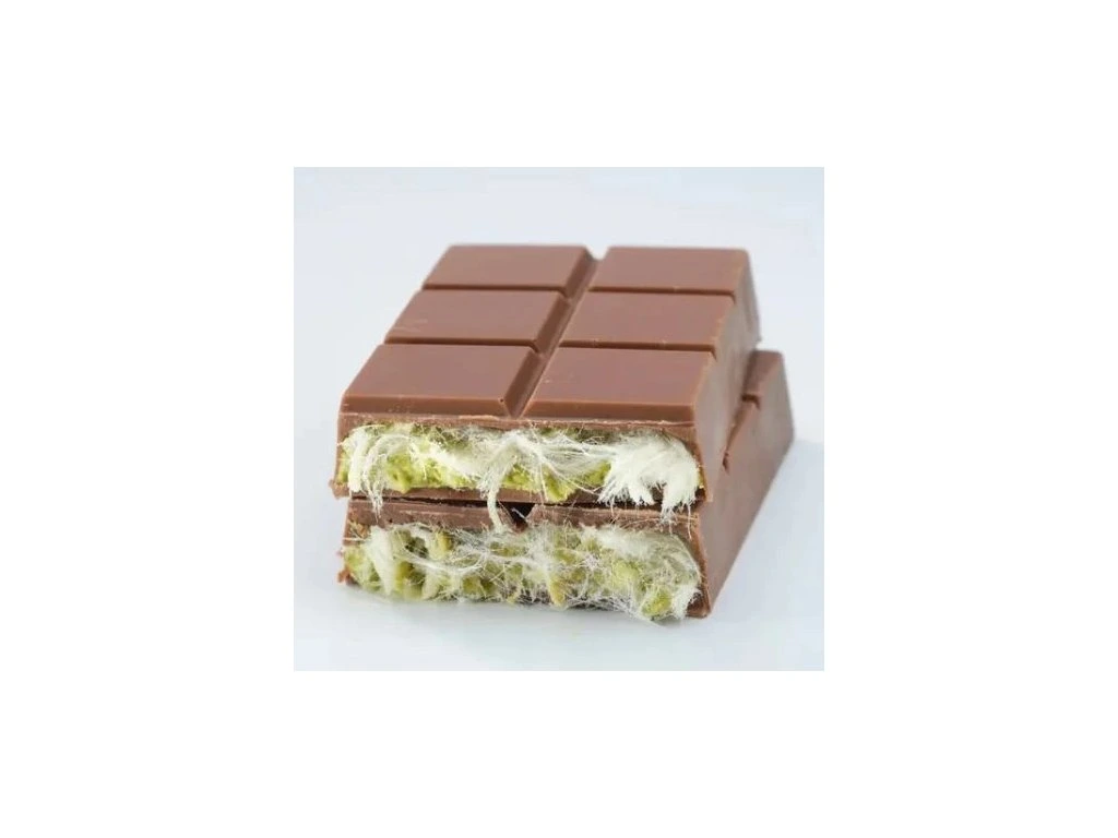Je to dokonalá kombinace mléčné čokolády, krémových pistácií a lehké cukrové vaty. Každé sousto této čokolády nabízí jedinečnou kombinaci chutí a textur, ideální pro chvíle potěšení nebo jako luxusní dárek.