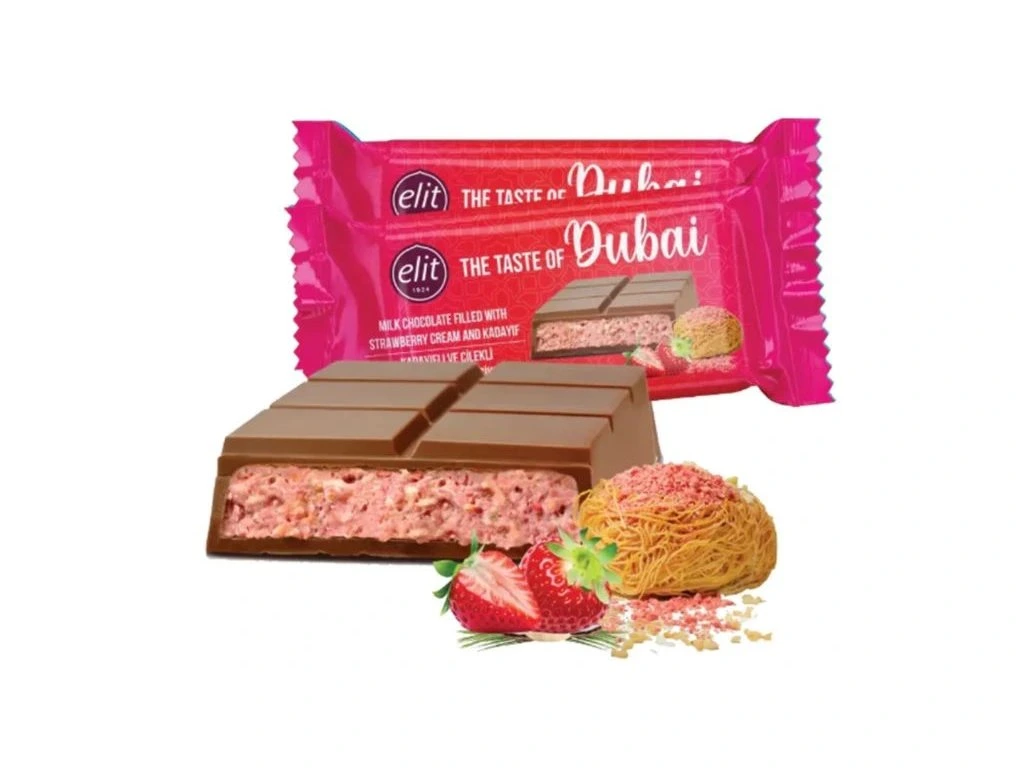 Pro ty, kterým se pistáciový krém zdá příliš intenzivní, máme ovocnou verzi čokolády Dubai s jahodovým krémem. Ovocná, osvěžující a stejně křupavá jako klasická čokoláda Dubai, tato čokoláda přináší zcela nový nádech této dobře známé a oblíbené chuti.