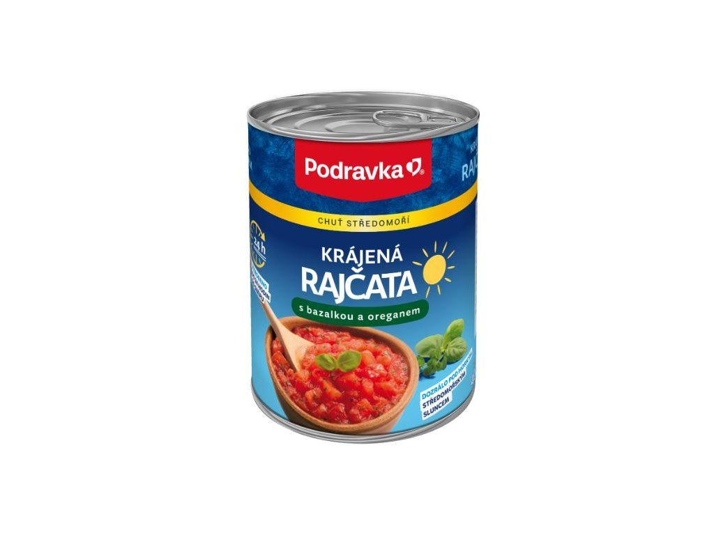 Krájená loupaná rajčata se hodí jako základ omáček, k těstovinám či do polévek.