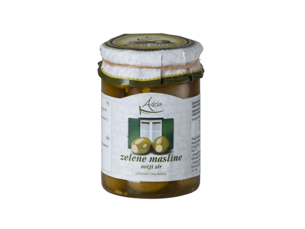 Zelené olivy Adria plněné ovčím sýrem jsou další pochoutkou mezi olivami Adria. Hořkost oliv a krémovost ovčího sýra jsou skvělou kombinací.
