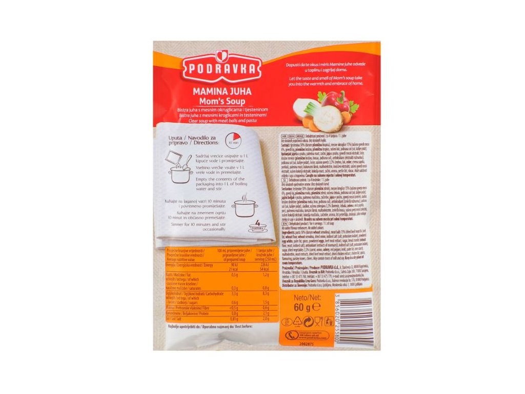 Výrobce: Podravka d.d., A. Starčevića 32, 48000 Koprivnica, Chorvatsko.